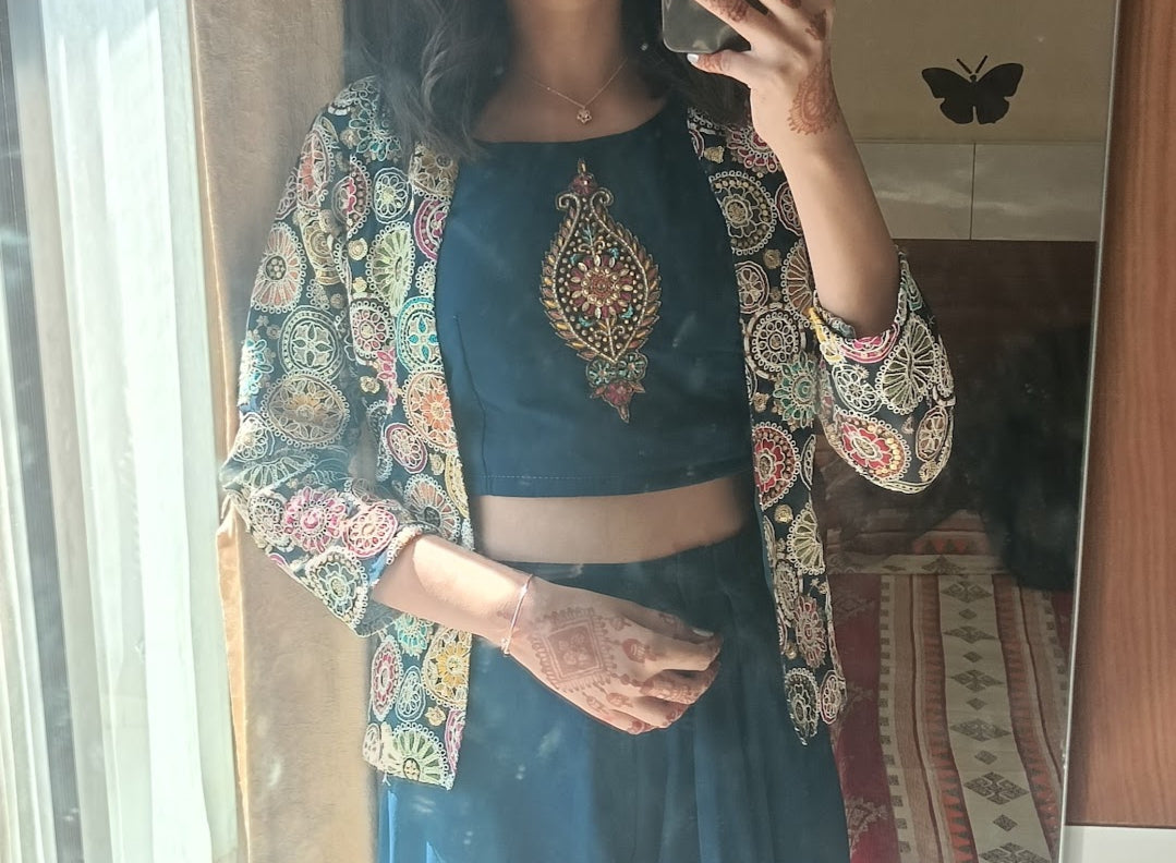 Perfect for both casual and festive occasions, the outfit maintains elegance while providing comfort.