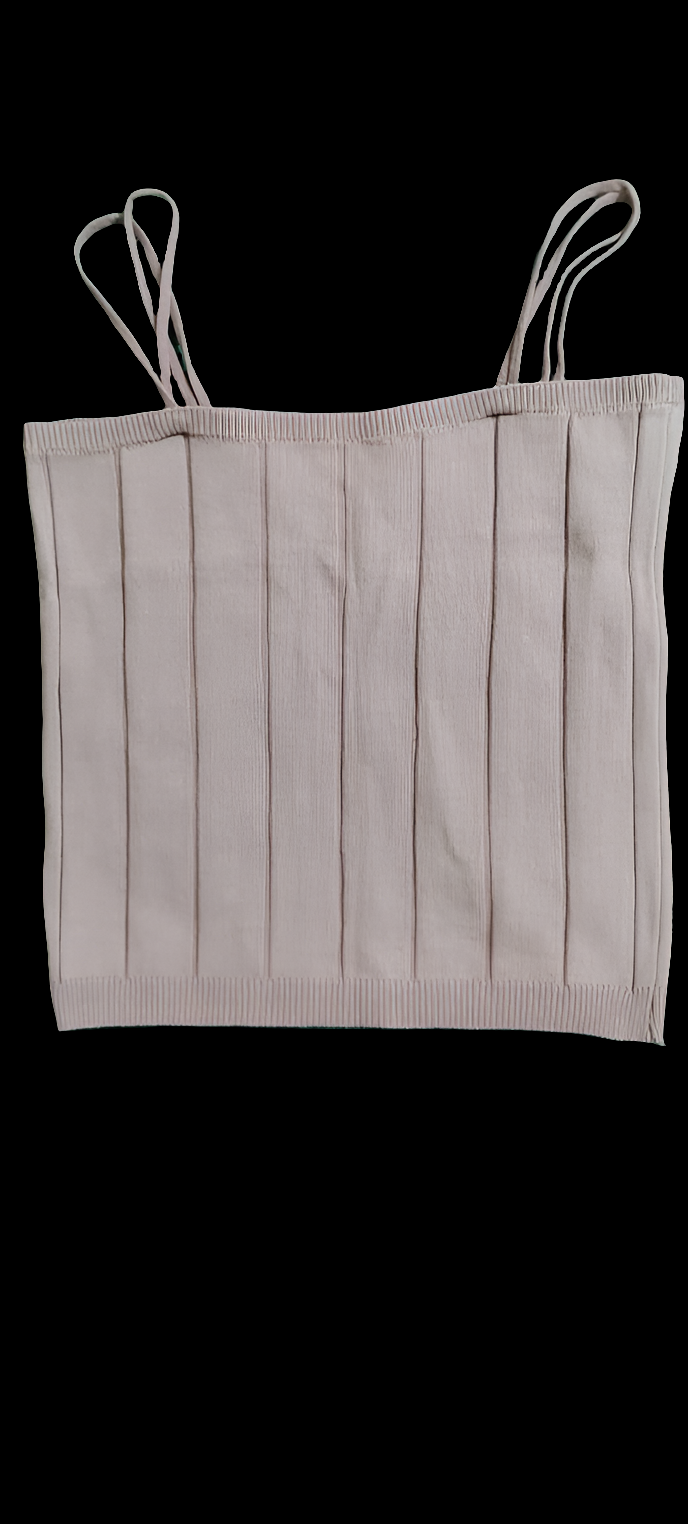 It's a fitted, sleeveless top typically made from a ribbed, stretchy knit fabric, often cotton blend, and featuring thin spaghetti-style shoulder straps.
